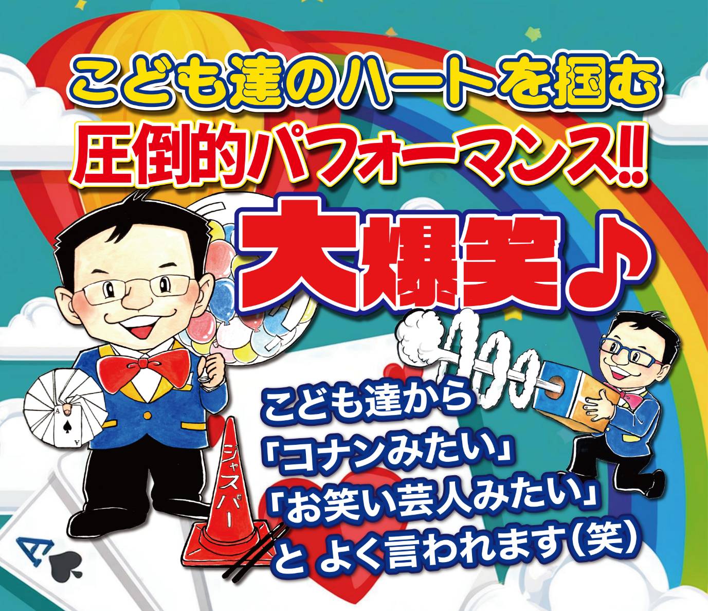 ちょっとおとぼけの手品のおじさん…こども達に夢と笑いと感動をモットーに